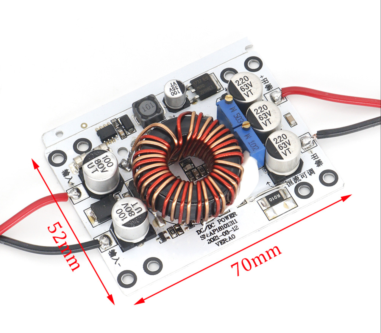 Вихідна потужність: 180Вт макс 8А макс струм під час роботи на низькій напрузі Гола плата без додаткового охолодження Макс потужність 30Вт Макс потужність із радіатором без вентилятора Макс потужність 50Вт Температура модуля перевищує 65 градусів, потрібно посилити тепловідведення.